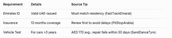 1: What are the basic requirements for car renewal in Dubai?